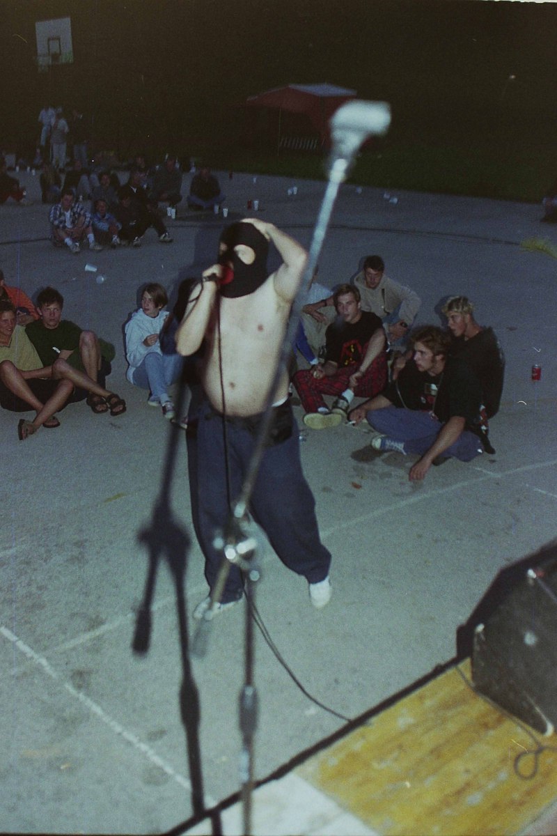 No, nastopilo je okoli 17+- bendov in to v petek: Golazen, laufej HC, Hubbubus, dobr, Kislo grozdje, AmRep HC-NOJZ iz Sežane, Sabaium, mal brutal metal, This side up, melod. punkrock, Italia, Apatridi Hrvatska HC-punk, No Limits Koper, crossover HC-punk ter Antiodpad iz pule, ki pa šopajo juhuhu HC. Kljub dežju se je uspelo zbrati kakšnih 150-200 ljudi, ki pa se zaradi njega niso sekirali kaj preveč. Vsaj jaz ne. Prireditev je trajala do ½ 2-eh, pa vendar brez nasilne prekinitve iz strani aparata države. TO!!