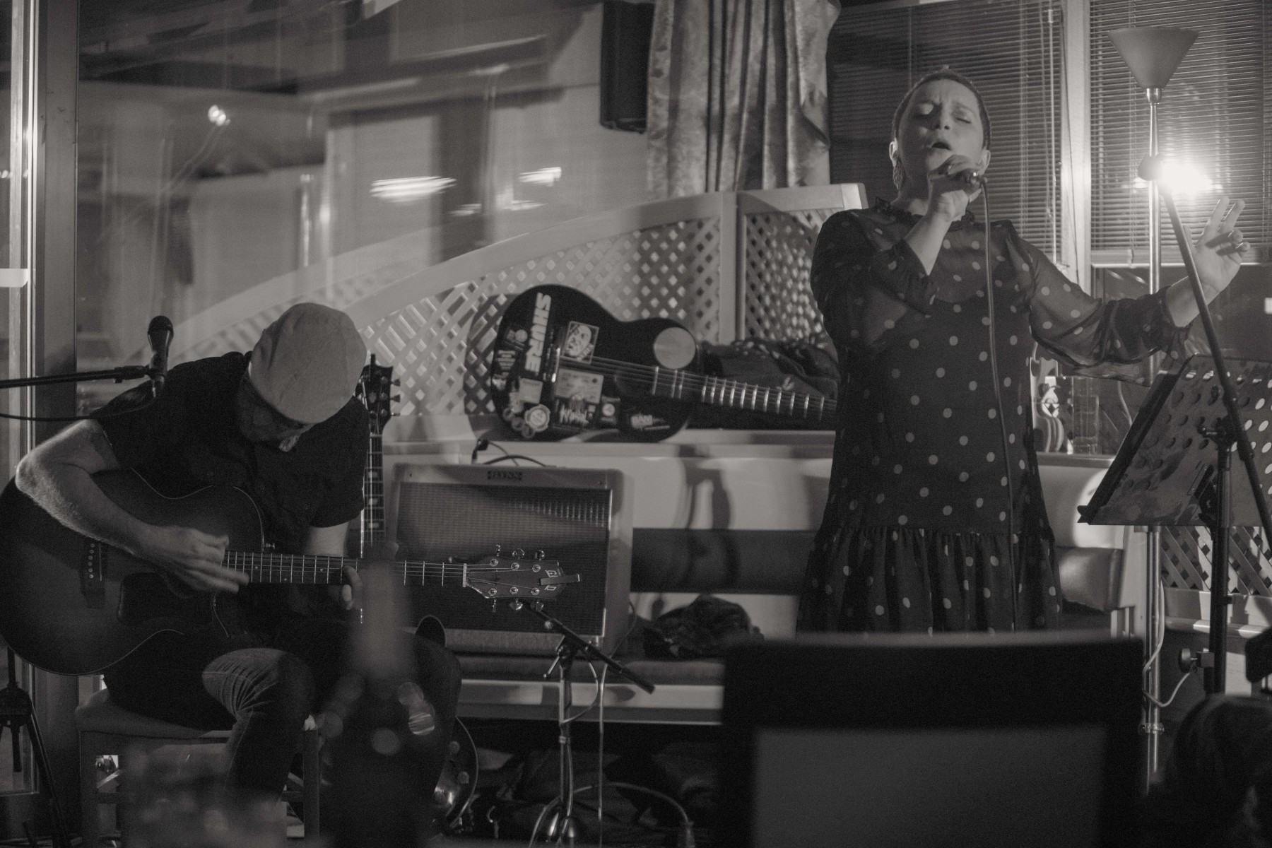 In če se kdo sprašuje kje so ljudje, na vprašanje KJE SI, ČLOVEK že nekaj časa iščeta odgovor tokratna gosta, par, ki ga krasi čudovita kombinacija srčnosti in virtuoznosti.KJE SI, ČLOVEK? PESMI PROTI VOJNI – glasbeno-poetski performans KATARINA JUVANČIČ in DEJAN LAPANJA