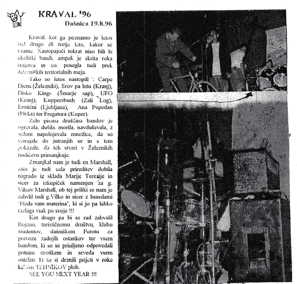 Kot drugo pa bi se rad zahvalil Bojanu, turističnemu društvu, klubu študentov, dašniskemu Perotu za prevoze zadnjih ostankov ter vsem bandom, ki so se prisiljeno odpovedali potnim stroškom in seveda vsem ostalim, ki so si drznili prijeti v roke kakšen TEHNIKOV ploh. SEE YOU NEXT YEAR!!!