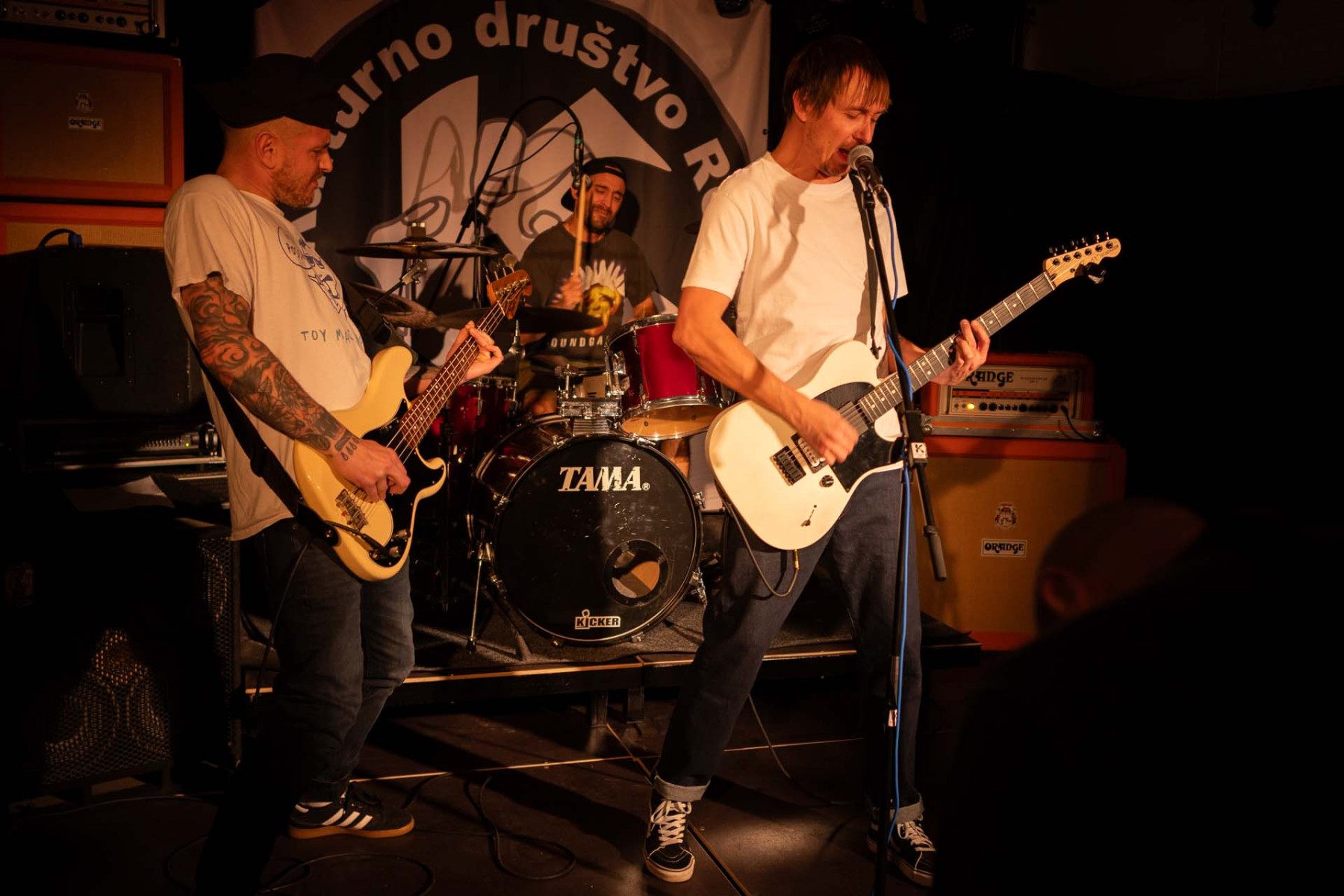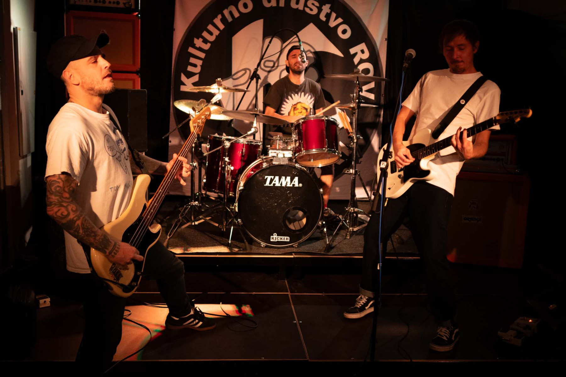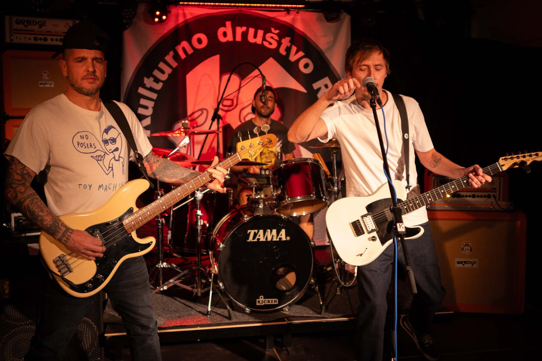 LIM SMRAD ŽILA (LJ). Iz Centra, iz Bežigrada, iz Šiške! Kitara Fender telecaster, kitarski ojačevalec Orange + 4×16 Marshall zvočnik, struna 10/52, bas Fender P-bass, bas ojačevalec Gallien Krueger, bobni Yamaha stage custom, Sabian činele, stol iz delavnice »pr Janiju«…