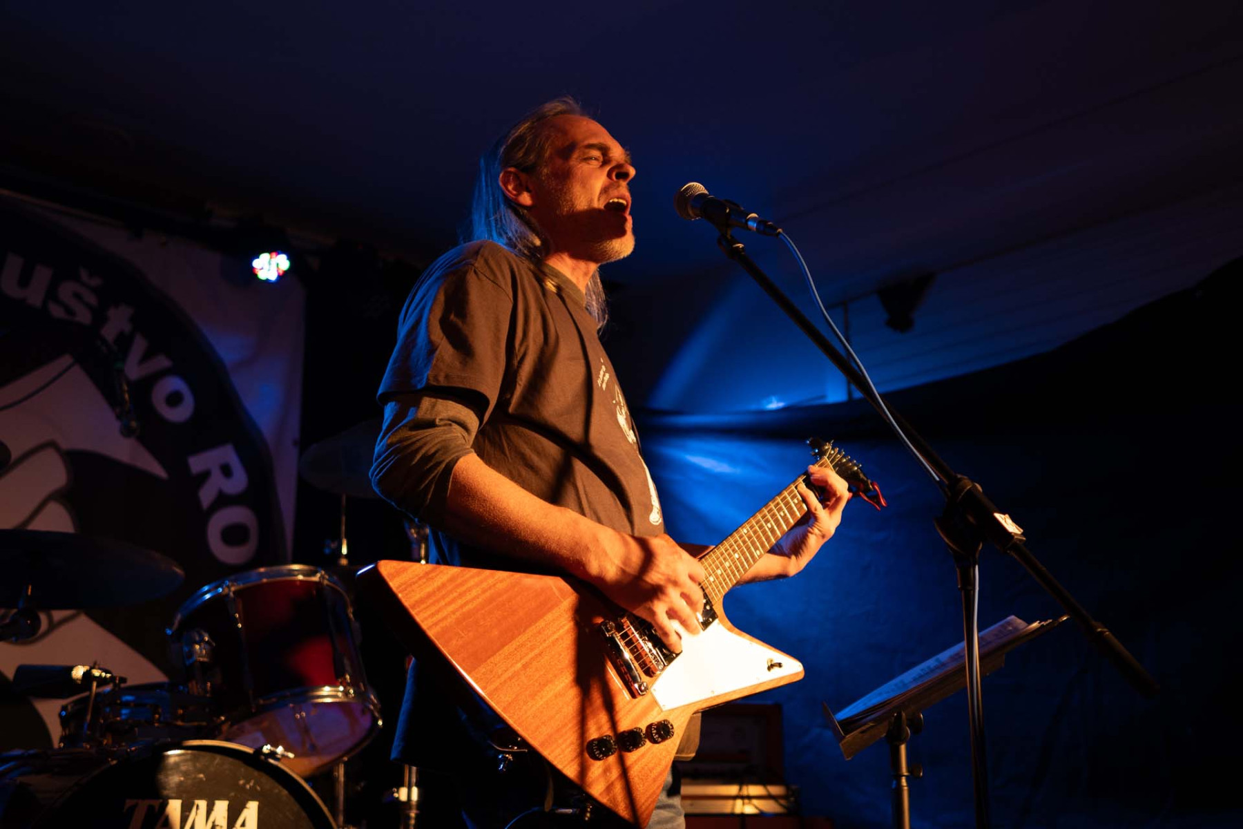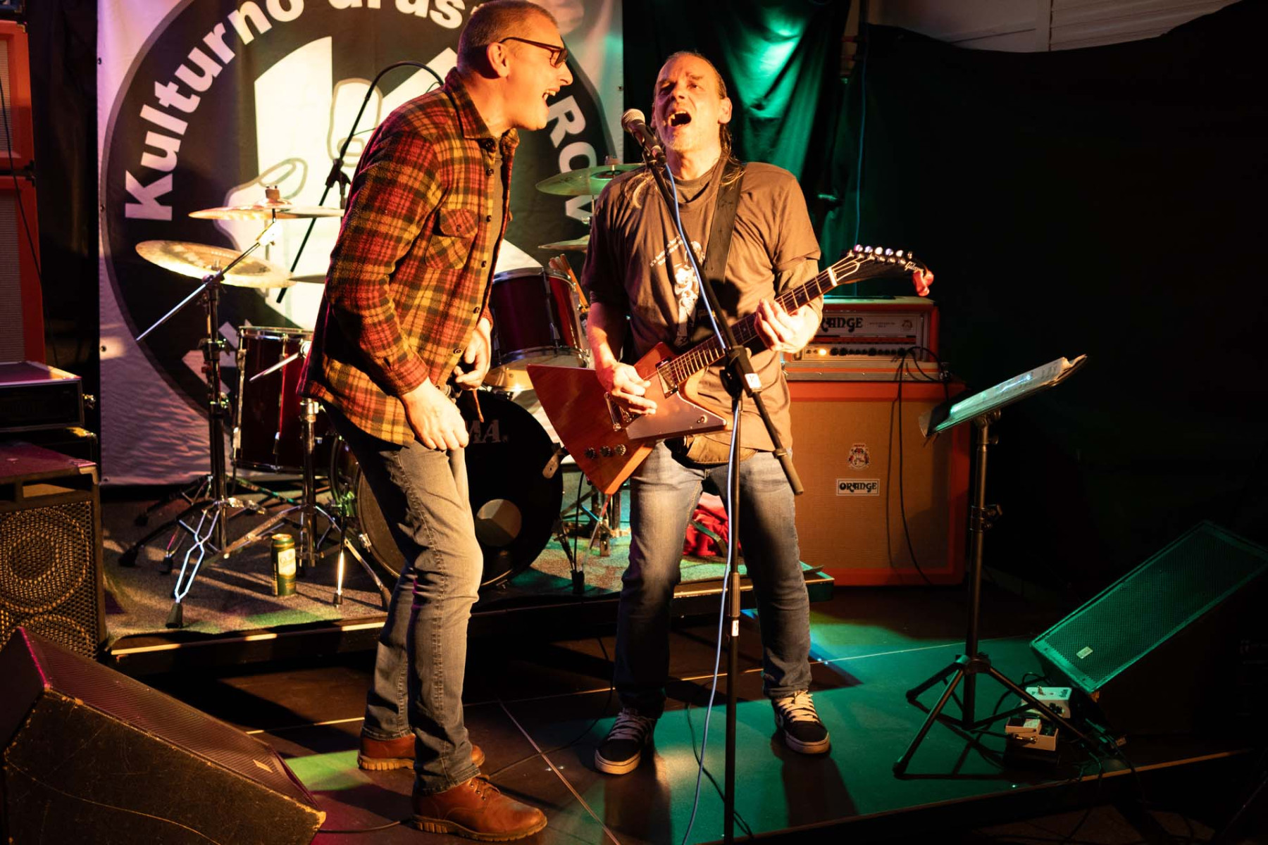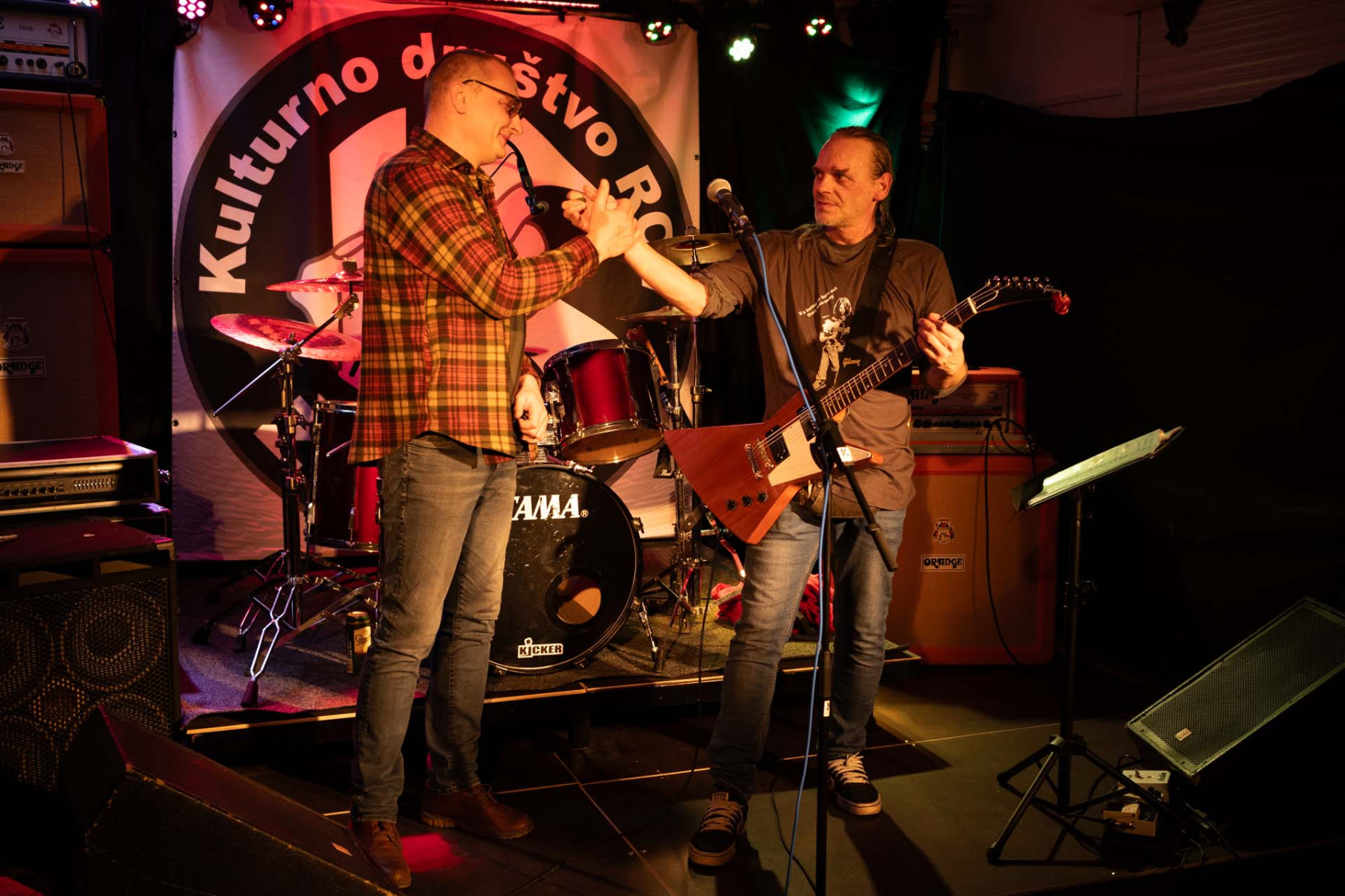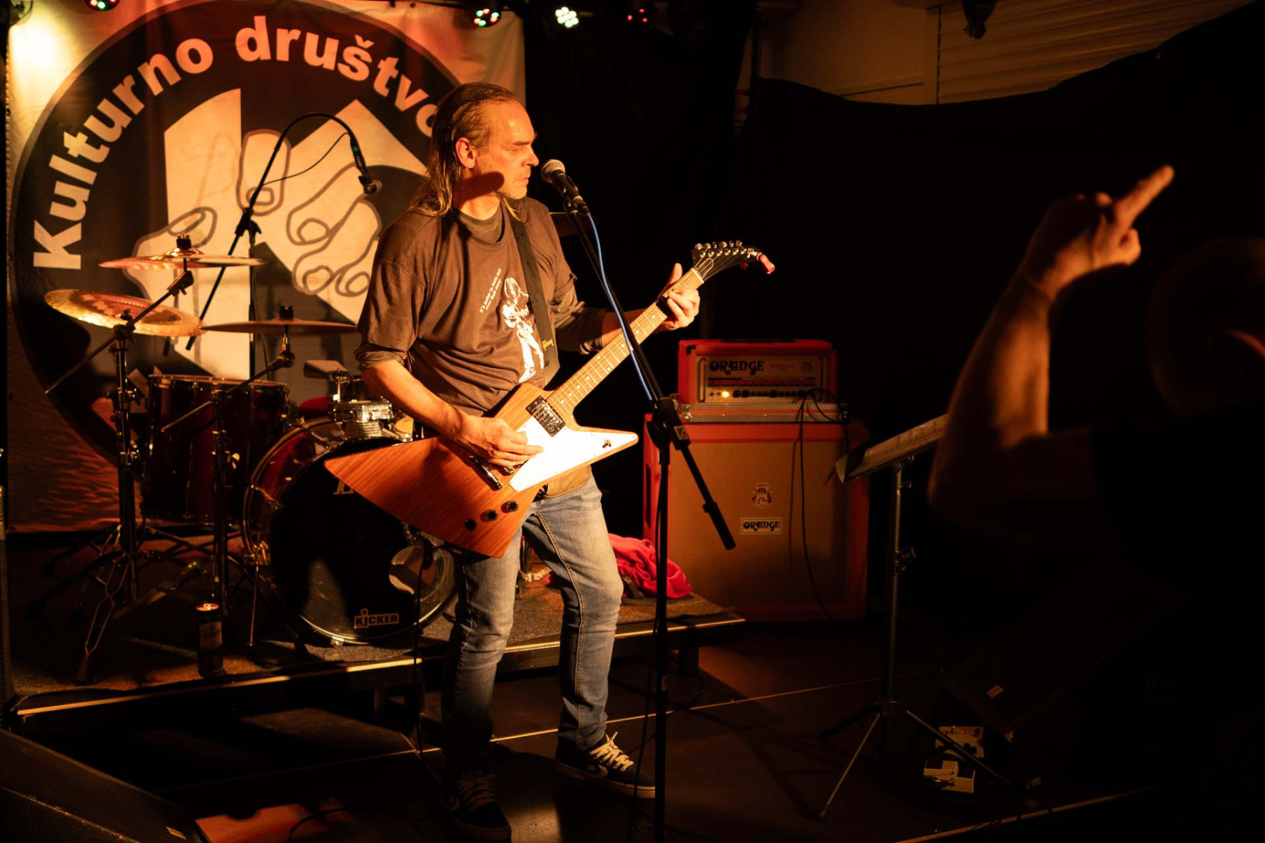 LIM SMRAD ŽILA (LJ). Iz Centra, iz Bežigrada, iz Šiške! Kitara Fender telecaster, kitarski ojačevalec Orange + 4×16 Marshall zvočnik, struna 10/52, bas Fender P-bass, bas ojačevalec Gallien Krueger, bobni Yamaha stage custom, Sabian činele, stol iz delavnice »pr Janiju«…