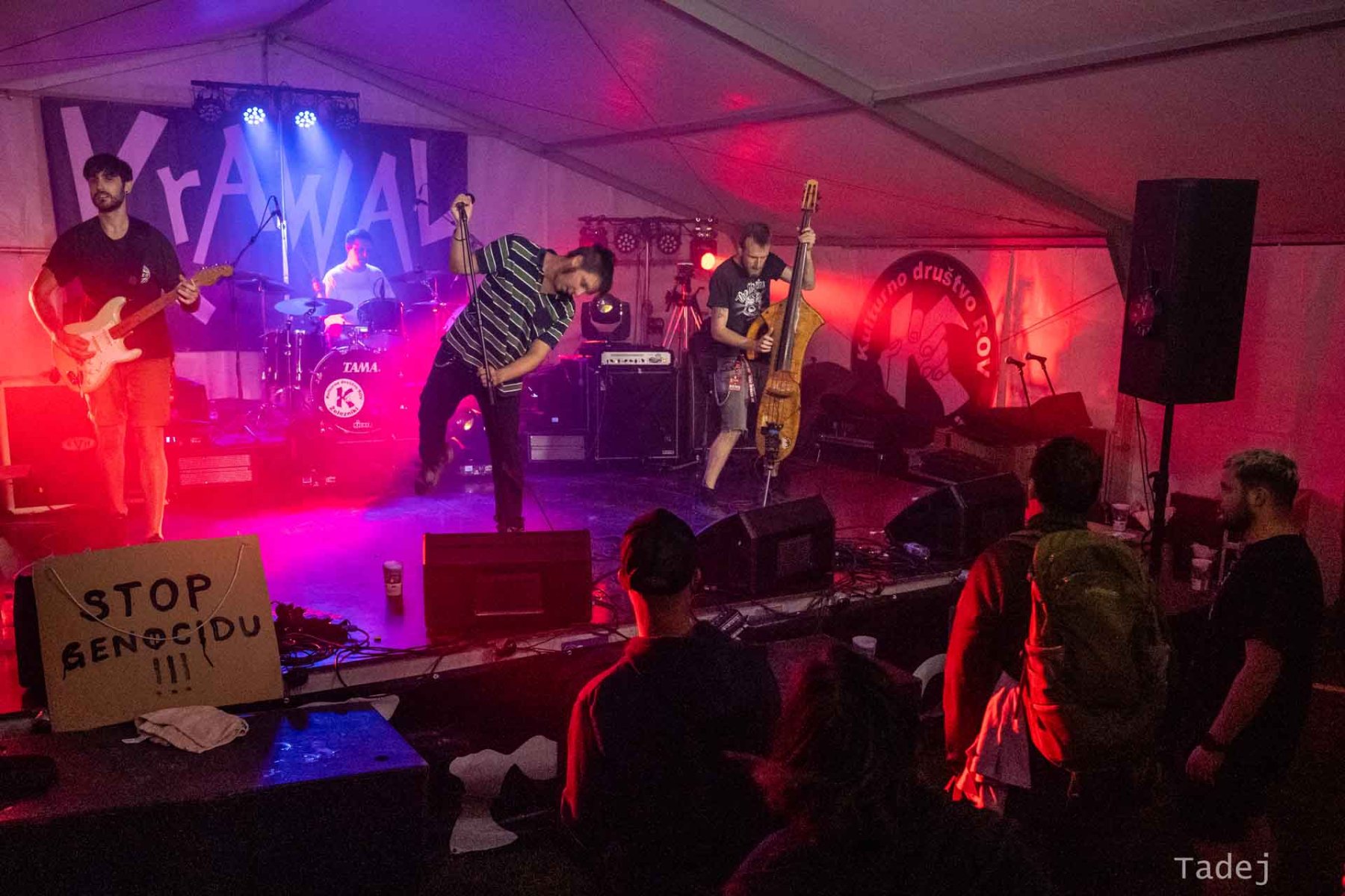 🎸 – Varovanje zaodrja: čuvanje, da v backstage ne zaide nihče drug kot nastopajoči, saj imajo tu shranjene svoje inštrumente in ostale rekvizite za nastop 🎸🎸🎸🪂