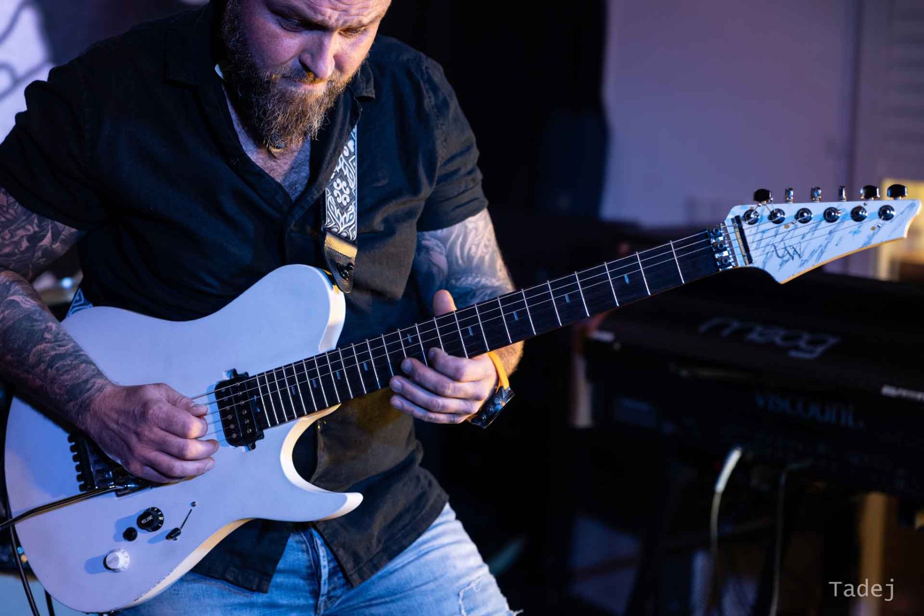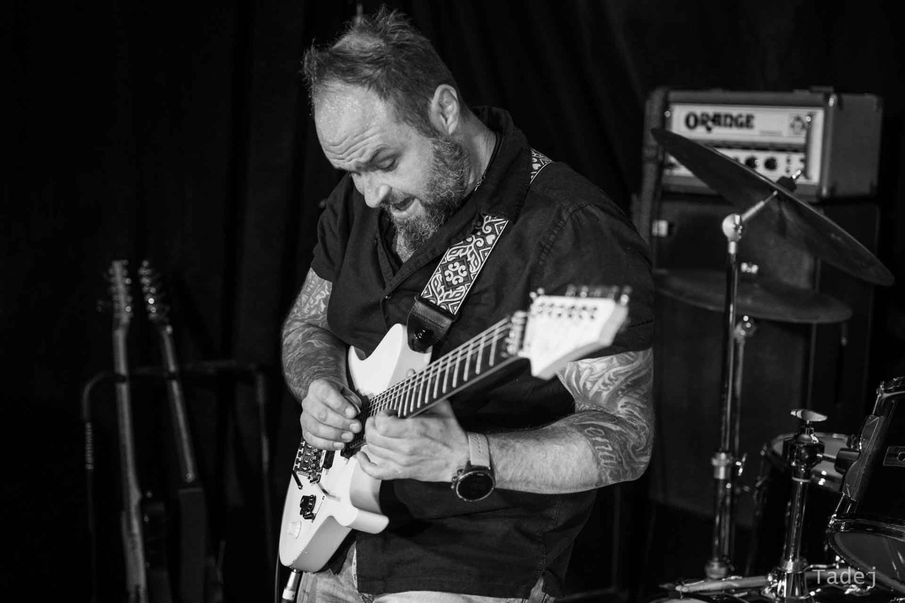 Njegovi kitarski ritmi so kot ritem kitara in ni samo “šprudlanje” po kitari. V avli bo imel samostojen koncert z matricami.